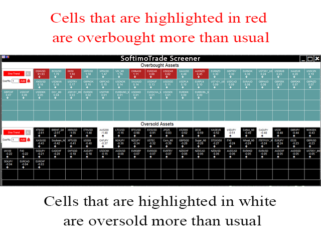 آشکار کردن مقدار متوسط برای هر ابزار – غربالگر SoftimoTrade Screener نه تنها وضعیت خرید و فروش بیش از حد دارایی را در TF انتخابی شما تعیین می کند، بلکه میانگین تغییر قیمت را برای دوره زمانی انتخاب شده برای این ابزار نیز محاسبه می کند.