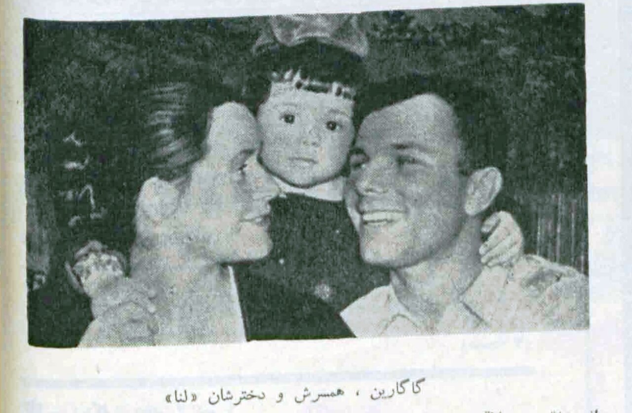 آری او قهرمان قلب من بود… میدانم که میلیونها دختر و زن در سراسر شوروی و جهان او را مرد محبوب و ایدهآل خویش میدانستند. عکس «یوری» را در اتاق خواب بسیاری از دخترها دیدهام. با این همه محبوبیت یوری در نزد زنان هرگز حتی یک لحظه مرا گرفتار کابوسِ حسد نکرده است. چون که خوب میدانستم او مرا بیشتر از همهی دختران و زنان جهان دوست میدارد. در زندگی من اگر لحظهای هست که هرگز فراموش نخواهم کرد، لحظهای است که بعد از سفر فضایی برای نخستین بار یوری را دیدم. نخستین کلماتش را خوب به خاطر میآورم، میگفت: «۱۰۸ دقیقه بیشتر آن بالاها نبودم؛ ولی خیال میکنم که سالهاست تو را ندیدهام!» و یادم میآیدم که دختر کوچکم «لنا» دستهایش را به گردن او انداخت و کودکانه پرسید: «بابا! آن بالا فرشتهها را هم دیدی؟» و یوری، لنا را بوسید و گفت: «نه، آن بالا فرشتهای ندیدم، ولی روی زمین دو فرشته را میشناسم که یکی تو هستی و یکی مادرت»