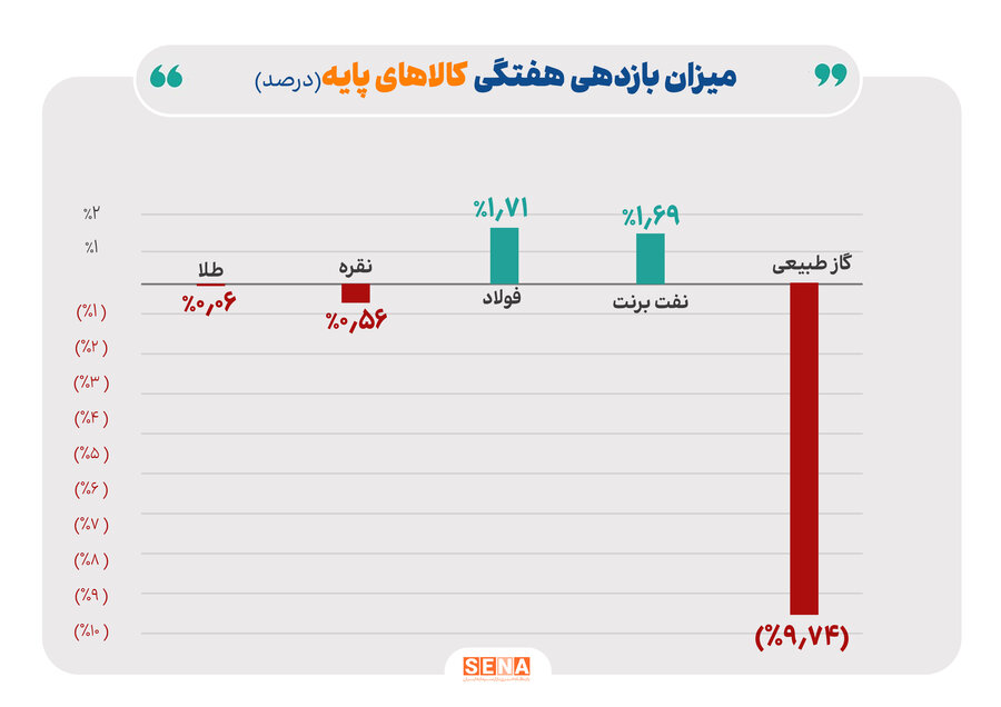 در بازار مواد اولیه صنعتی، فولاد با رشد هفتگی ۱.۷۱ درصد به قیمت ۳۲۶۹ یوان در هر تن رسید. با این حال، روند بلندمدت بازار فولاد نشاندهنده کاهش ۱۷ درصدی قیمت در سال جاری است. اقتصاد چین، بهعنوان بزرگترین مصرفکننده فولاد، تحت تأثیر بحران املاک و مستغلات و کاهش فعالیت ساختوساز قرار دارد. کاهش قیمت مسکن و اعتماد پایین سرمایهگذاران به سیاستهای حمایتی دولت چین از جمله دلایل ضعف تقاضا در این بازار است.