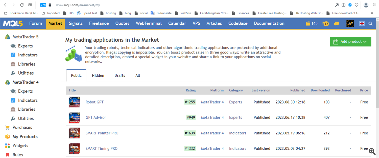 با این حال، ما برای اعضای mql5.com که آن را با عملکرد دست نخورده “رایگان” محصول دانلود کرده اند در مقایسه با دانلود “نمونه نمایشی رایگان” برای محصولات پولی، ارزش زیادی قائل هستیم. ما همچنان اجازه می دهیم محصولات “رایگان” در مواقعی که به اطلاعات آنها نیاز دارید، مکرراً فعال شوند.