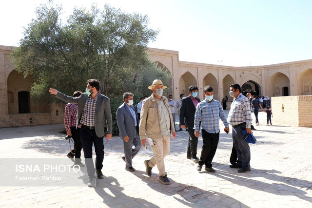 ارزیاب یونسکو به همراه تیم میراثی خود، پای در محوطه کاروانسرای رشتی در اردکان گذاشته است؛ اینجا آخرین مقصد در یزد برای ارزیابی است، با دقت و آرامش به فضا نگاه میکند.