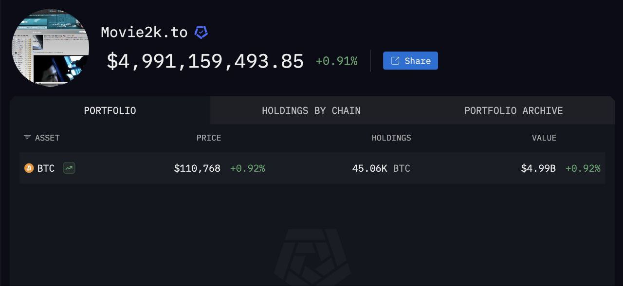 [ad_1] گزارش های جدید از شرکت اطلاعاتی blockchain Arkham ادعا می کند که مقامات آلمانی ممکن است از یک مورد عظیم دیگر بیت کوین مرتبط با سایت دزدی دریایی فیلم 2K غافل شده باشد. آرکام اظهار داشت که بیش از 45000 بیت کوین ، به ارزش نزدیک به 5 میلیارد دلار با قیمت های امروز