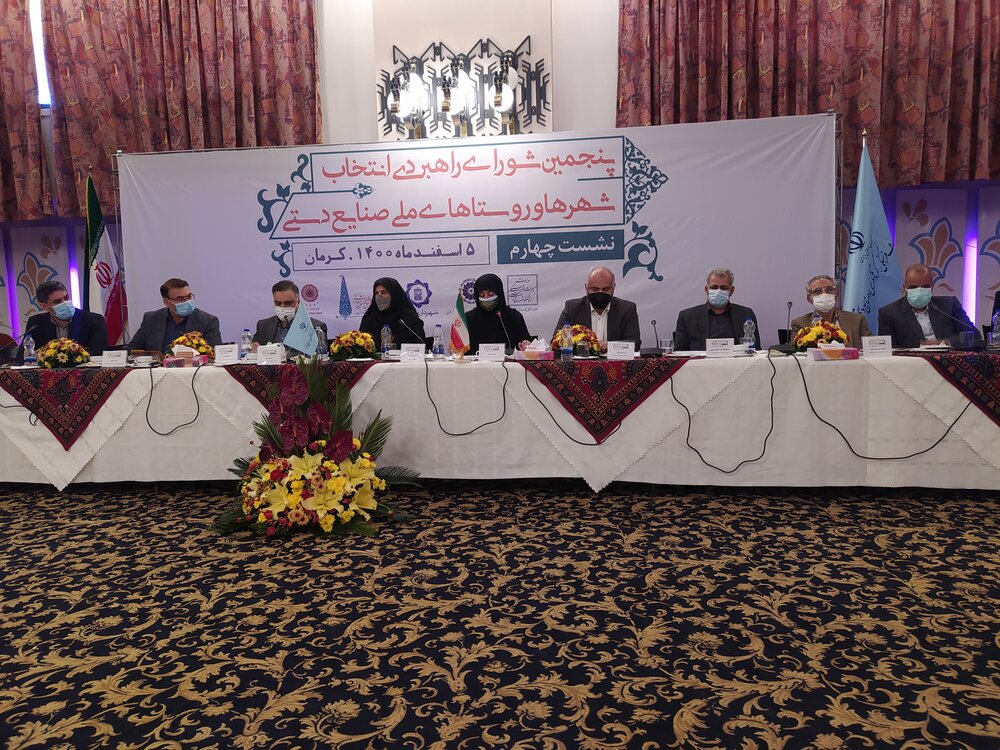 وی افزود: امروز در پنجمین شورای  راهبردی انتخاب شهرها و روستاهای ملی صنایع‌دستی در استان کرمان بر اساس نظر هیئت ارزیابان و هیئت داوران شورای راهبردی شهرستان شهر بابک به عنوان شهر ملی فیروزه، قلعه‌گنج به عنوان شهر ملی حصیربافی، راور به عنوان شهر ملی قالی، کرمان به عنوان شهر ملی پته و شهر راین با یک فاصله زمانی شش ماهه مشروط به انجام موضوعات گفته‌شده به عنوان شهر ملی چاقو به ثبت ملی رسیدند.