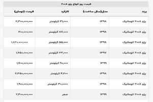 پژو ۲۰۰۸ اتوماتیک صفر بالای ۲ میلیارد تومان قیمت زده شد + جدول قیمت صفر