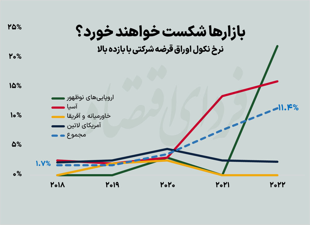 به گفته بانک JPMorgan Chase، نرخ نکول برای صادرکنندگان بدهیهای شرکتی پربازده در بازارهای نوظهور امسال به ۱۱.۴ درصد رسیده است که بسیار بالاتر از ۱.۷ درصد در سال ۲۰۱۹ و میانگین بلندمدت ۳.۷ درصد است. نرخهای بالاتر و دلار گران تنها تا حدی مقصر هستند. مشکلات در چین متمرکز شده، جایی که مشکلات بازار املاک نرخهای نکول در این بخش را برای دو سال متوالی در سطوح دو رقمی نگه داشته است، این موضوع در روسیه و اوکراین نیز درحال رخ دادن است. انتظار میرود که شرکتهای روسی در سال ۲۰۲۳ بدهیهای ۲۸ میلیارد دلاری را که معادل دو سوم باقی مانده بدهی است، نکول کنند. با این حال، جیپی مورگان تخمین میزند که بازارها تا حد زیادی از قبل، قیمتهای زیاندهی داشتهاند، بنابراین بعید است که نکولهای تهاجمی بحران گستردهتر را ایجاد کنند.