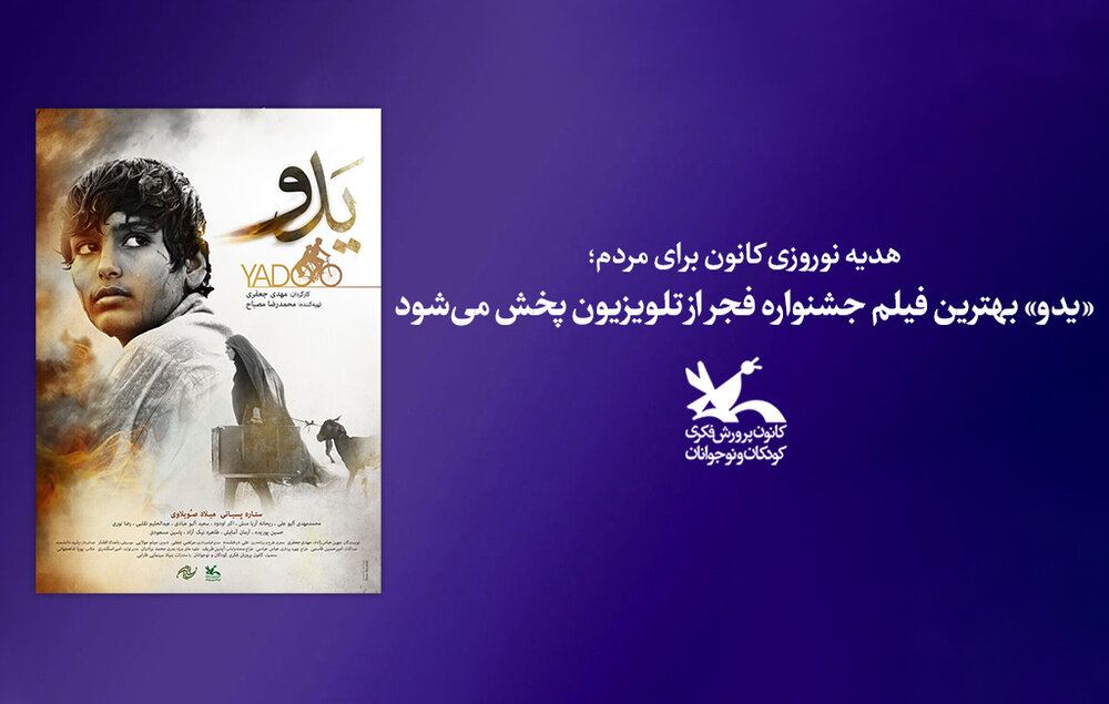 به گزارش خبرگزاری خبرآنلاین، «یدو» به عنوان تازهترین فیلم سینمایی کانون پرورش فکری کودکانونوجوانان روز جمعه ۶ فروردین ساعت ۱۱:۱۵ از شبکه اول سیما و روز جمعه ۱۳ فروردین ساعت ۱۵ از شبکه سوم سیما اکران میشود.