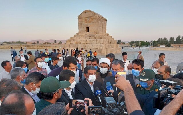 او در همان سفر به پاسارگاد و آرامگاه کوروش رفت، در بین مردم و کشاورزان معترض گفت که «مردم شهر پاسارگاد بهخاطر مقبره کوروش و قوانین ما نمیتوانند ساختمان دوطبقه بسازند، درست کشاورزی کنند، چاه بزنند، دکل بزنند. من باید این مشکل را حل کنم. یک مقدار انقباض قوانین حریمها را بردارم و انبساطی کنم. از جناب آقای رئیسی هم خواهش میکنم اجازه بدهند هم در شورای عالی انقلاب فرهنگی و هم در دولت این موضوع را با اولویت مطرح کنیم، چون این تصمیم یک تصمیم ویژه و مثل حرکت روی لبه تیغ است.»