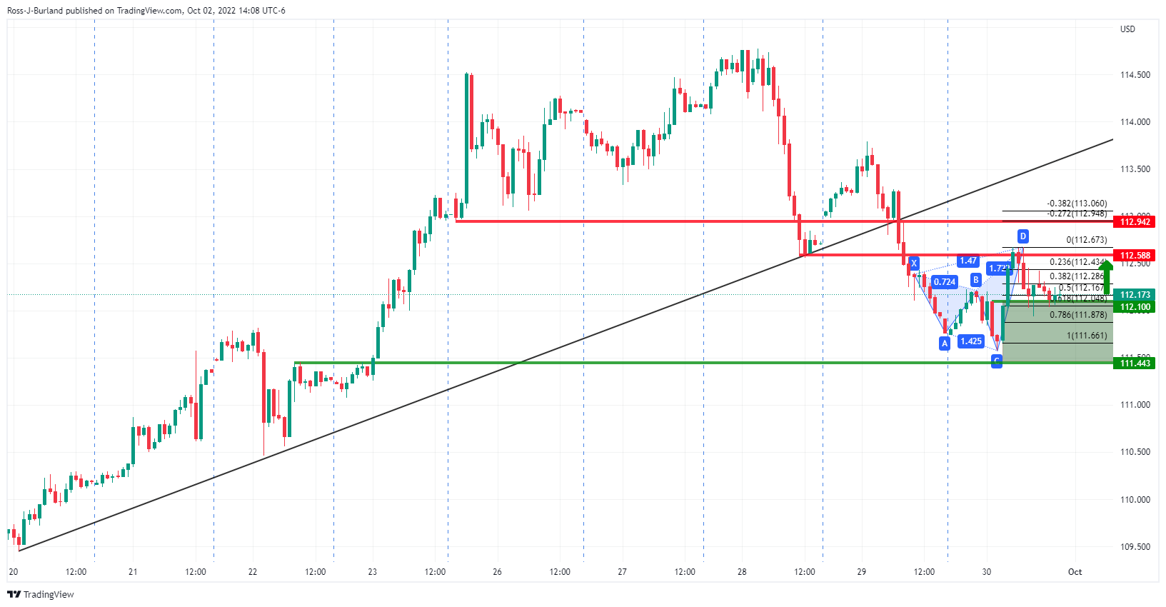 الگوی هارمونیک با حرکت خرسها در یک ساختار مقاومتی کلیدی انجام شد تا قیمت را تا انتها به خط گردن شکلگیری در یک تغییر معنیدار به سمت سطح فیبوناچی 78.6% سوق دهد. برای بازار باز، گاوها منتظر حرکت به سمت مقاومت قبلی نزدیک به 112.70 هستند. این باعث میشود که برای جفتهای مربوطه چنین کابلی روی جنبه منفی تمرکز شود: