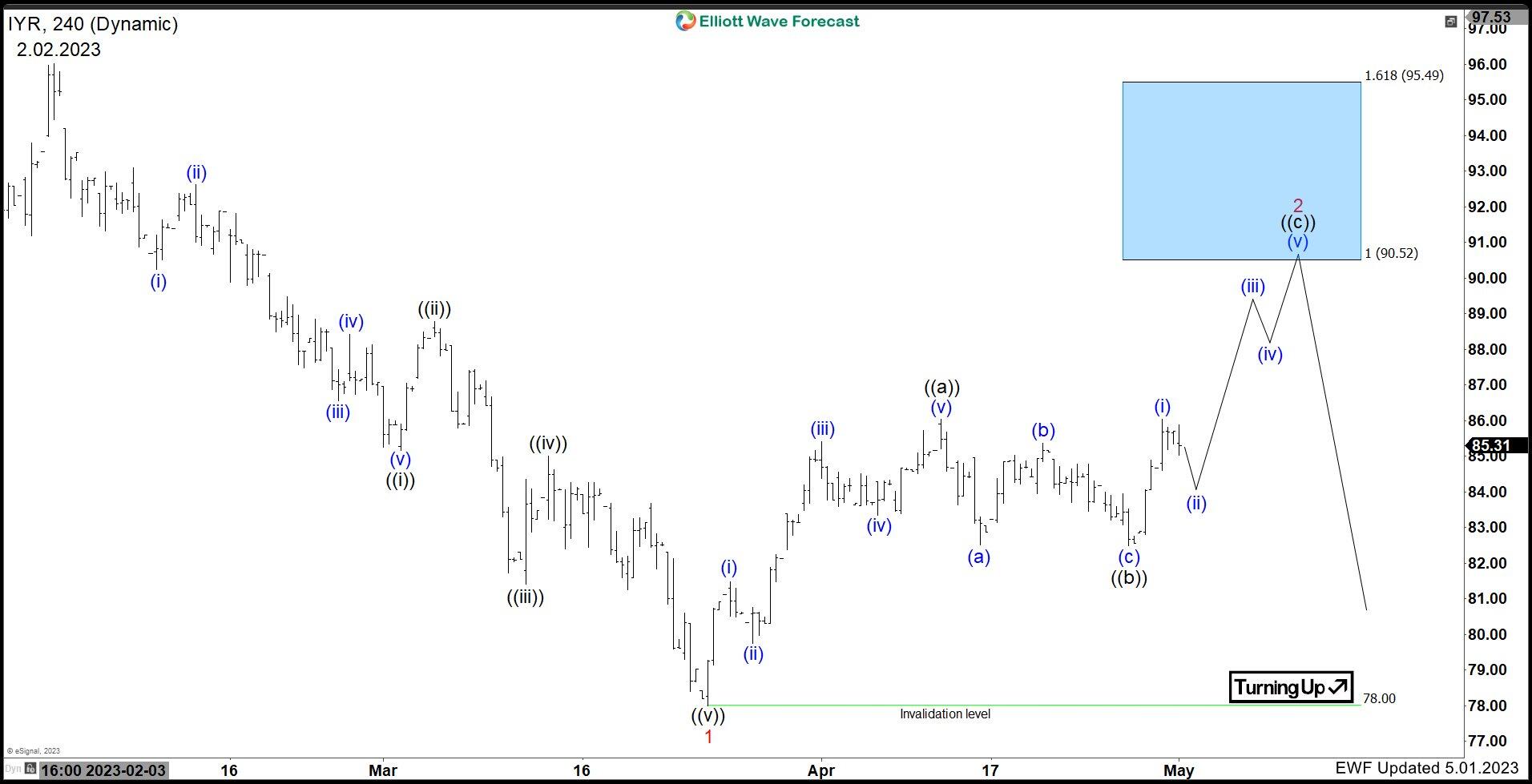 $IYR (املاک و مستغلات) 4H تجزیه و تحلیل موج الیوت 1 مه 2023: