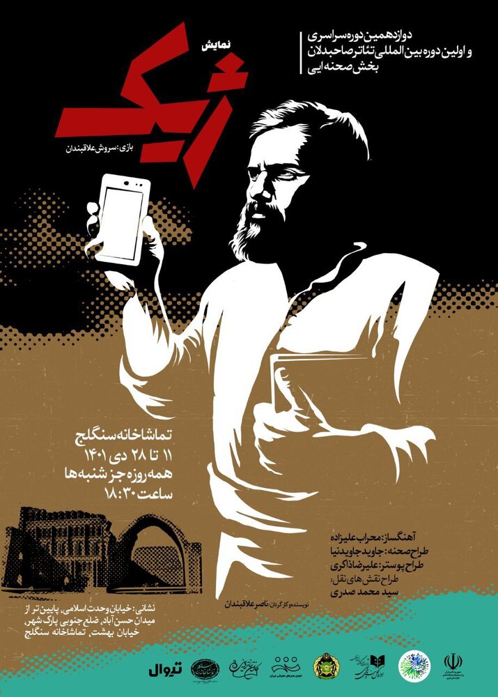 عوامل گروه این نمایش عبارتند از : ناصر علاقبندان نویسنده و کارگردان، سروش علاقبندان بازیگر، محراب علیزاده آهنگساز و نوازنده تنبک، نی و دف، روح الله علاقبندان نوازنده پیانو، مجتبی محمودزاده مدیر تهیه و تولید، جاوید جاوید نیا طراح صحنه و لباس، علیرضا ذاکری طراح پوستر و بروشور، سید محمد صدری طراح نقش های نقل، حسین کاظم رودباری طراح نور، رضا استادی روابط عمومی، معین خیاطی و بهمن علاقبندان دستیار کارگردان، عباس نوروزی تصویربردار، محمد بیگدلو ساخت دکور، عباس نوروزی، بهنام محسنی و علی ناصر بارانی عکاس.