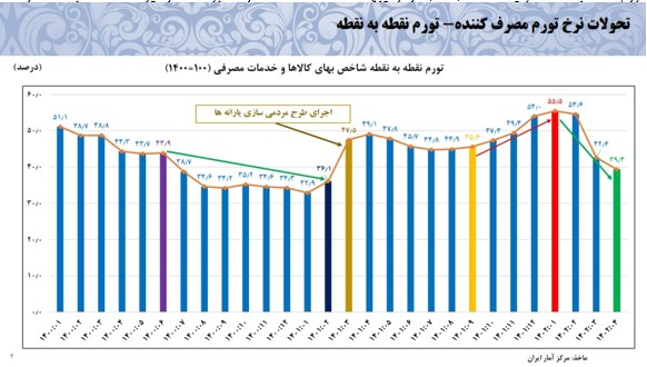 تورم نقطه به نقطه تولید کننده (PPI) در اردیبهشت 1400، 103 درصد بود که در تیرماه 1402 به 32 درصد کاهش یافته است. همچنین تورم ماهانه تولید در تیر ماه سال جاری به ۱.۸ درصد کاهش یافته است که یکی از پایینترین نرخها در سالهای گذشته به شمار میرود. بنابراین کاهش شدید تورم تولیدکننده در کاهش تورم مصرف کننده نیز متبلور است.