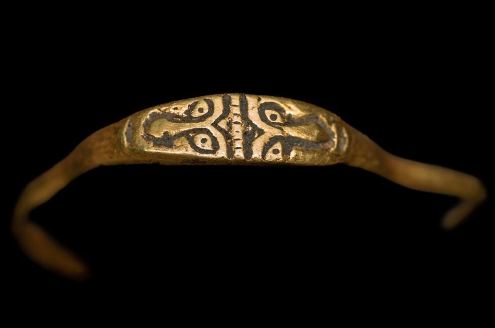 قدمت این حلقه به قرن یازدهم یا دوازدهم میلادی بازمیگردد و روی آن تصاویری از دو چهره حکاکی شده است که احتمالا تصویرگر «ژانوس»، خدای دروازهها و آغاز و پایانها در اساطیر رومی است. سایر حلقههای مربوط به این دوران ساده و یا منقش به الگوهای هندسی ساده هستند. این حلقه همچنین به دلیل اینکه هیچ اثری از نشانههای مسیحیت روی آن دیده نمیشود، قابل توجه است.