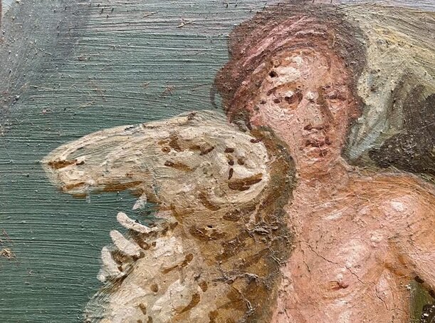 «گاردین» نوشت این نقاشی که پس از گذشت بیش از ۲۰۰۰ سال هنوز رنگارنگ است، در میان چندین نقاشی دیواریِ کشفشده در پروژه مرمت «عمارت لدا» پیدا شد.