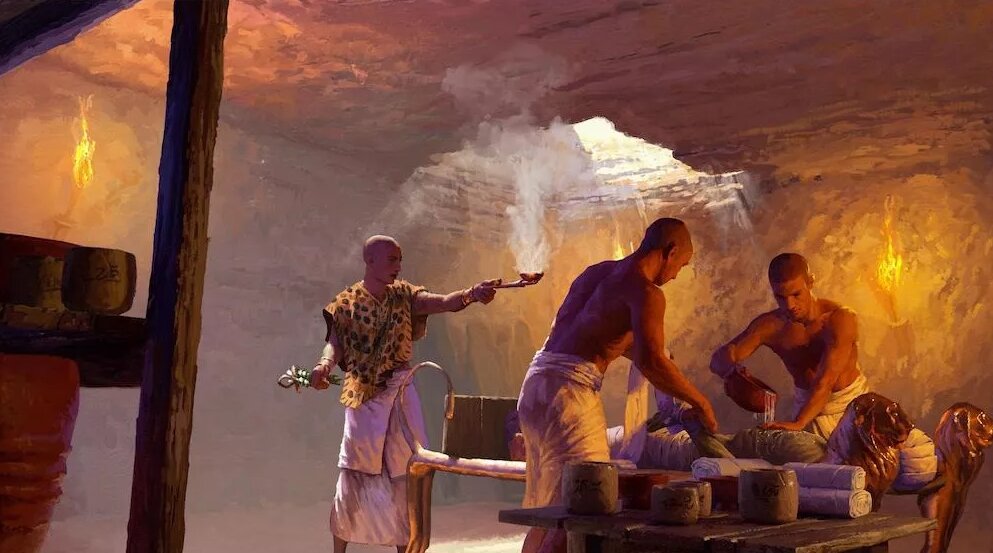 در سال ۲۰۱۶، گروهی متشکل از باستانشناسان بینالمللی کارگاه زیرزمینی مومیایی کردن اجساد را در نزدیکی هرم «اوناس» واقع در جنوب قاهره کشف کردند. درون این کارگاه که مجموعهای از اتاقها را دربرگرفته بود، حدود ۱۰۰ ظرف سرامیک متعلق به دوران دودمان بیست و ششم مصر باستان(۶۶۴ تا ۵۲۵ پیش از میلاد) نگهداری میشد. با اینکه بر روی بسیاری از این ظروف توضیحات درباره محتوای آنها وجود داشت، برخی از ترکیبات مومیایی کردن در زمان کشف ناشناخته بودند.
