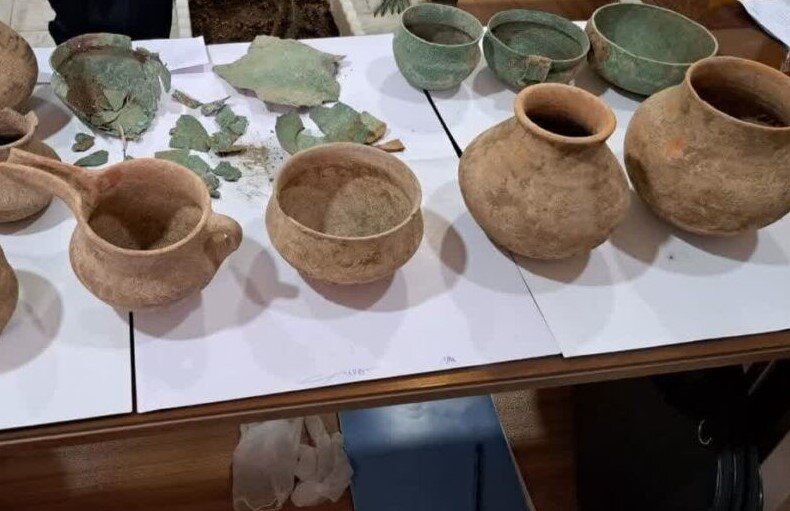 وی ادامه داد: این آثار که شامل هفت قطعه ظرف سفالی سالم، سه ظرف مفرغی سالم و هفت ظرف سفالی شکسته است که کارشناسان قدمت ۳۰۰۰ ساله را برای این اشیاء تخمین زدند.