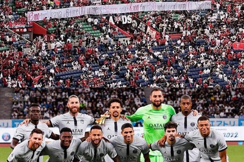 روی این بنر نوشته شده بود:« ۳۰۰۰ ین(۲۲ یورو) برای بلیت بازی مقابل بایرن مونیخ که برنده شش چمپیونزلیگ شده و ۸۰۰۰ ین(۵۸ یورو) برای بلیت بازی مقابل پاری سن ژرمن که هیچ چمپیونزلیگی ندارد. شوخی میکنید؟»