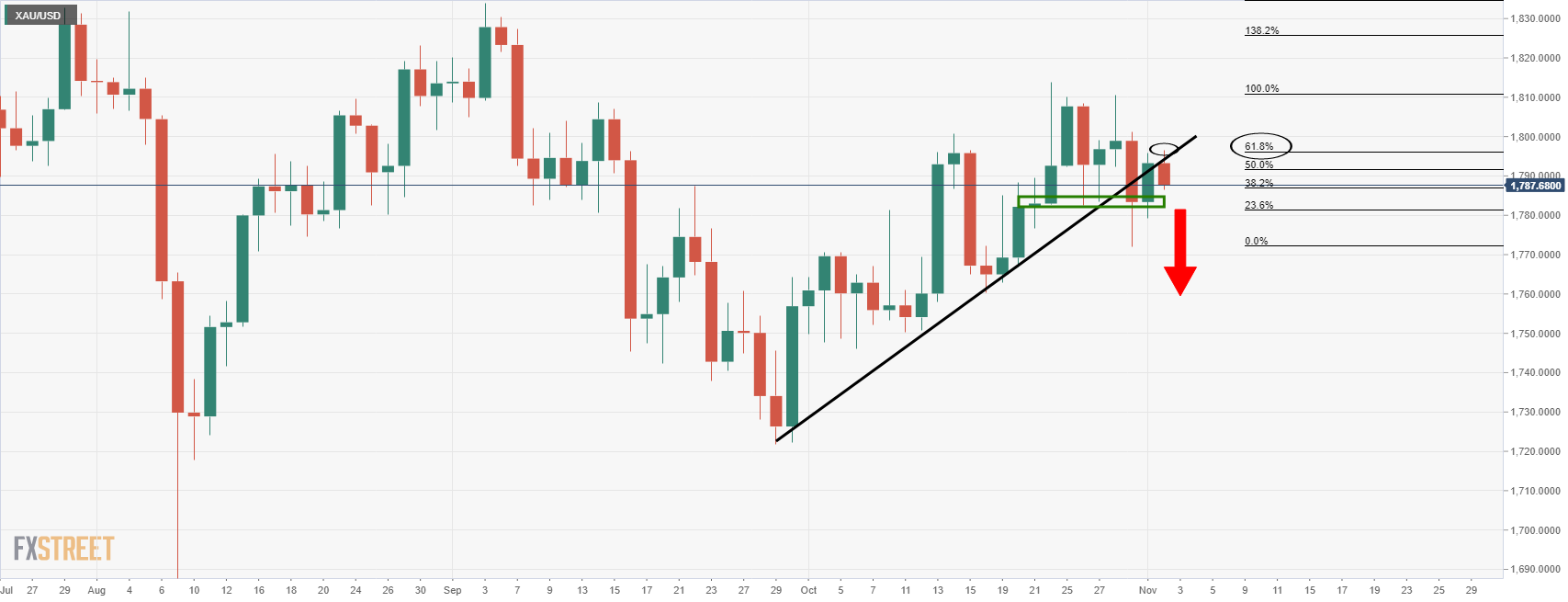 [ad_1] طلا در آستانه نتایج FOMC در روز چهارشنبه به سطح بحرانی مقاومت می رسد. تکنسین ها از منظر روزانه به دنبال یک ادامه منفی خواهند بود. قیمت طلا در طول شبانه روز با 0.3 درصد کاهش به 1786.45 دلار در هر اونس از بالاترین رقم 1796.43 دلار رسید، در حالی که فعالان بازار بر
