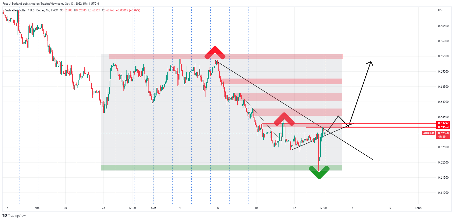 [ad_1] AUD/USD پیشنهادی را پس از فروش به دلار آمریکا پیدا کرده است. گاوها به شکست 0.6330 اوج شکل گیری اخیر چشم دوخته اند. پس از انتشار دادههای تورم در ایالات متحده، قیمت اوج شکلگیری را تشکیل داده است که تمرکز را بر روند صعودی روز آینده و دادههای خردهفروشی ایالات متحده برای جمعه در