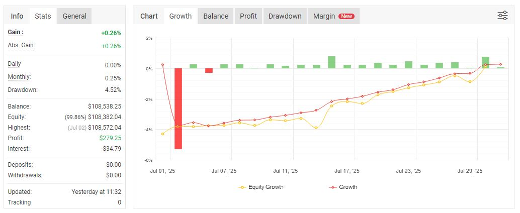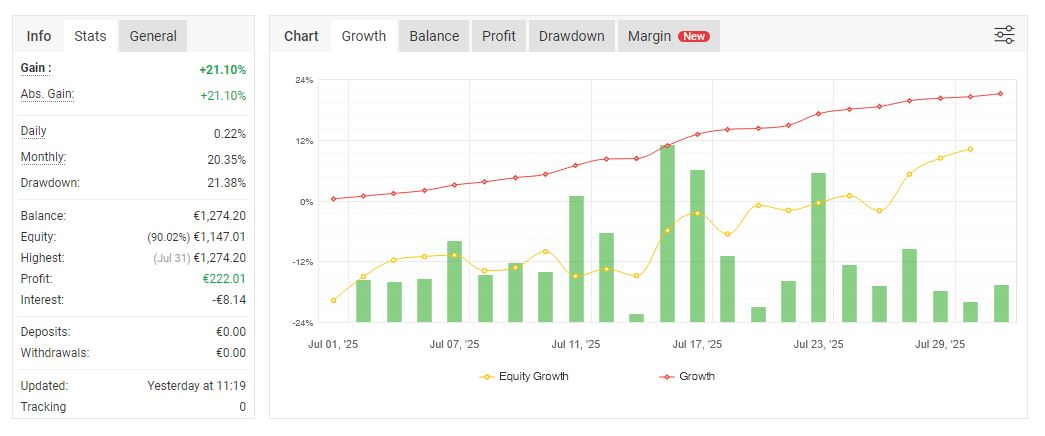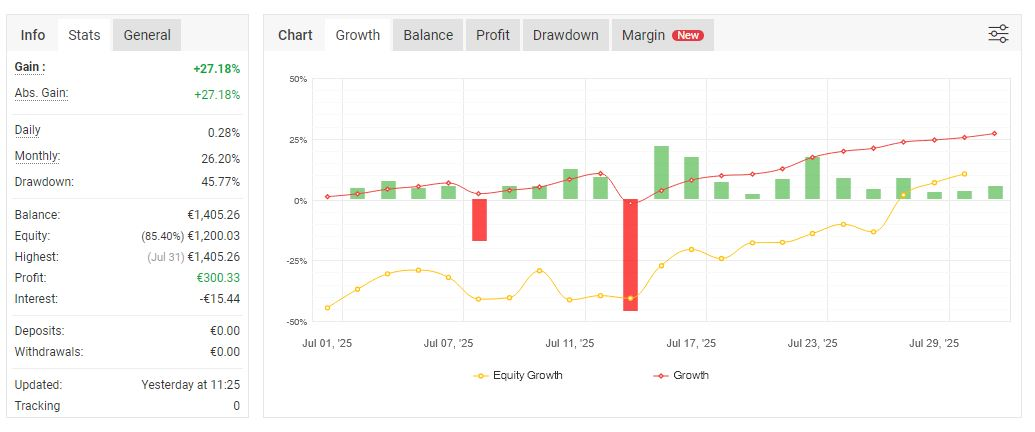 با 95 ٪ معاملات برنده و حداقل کاهش ، ریسک کم برای معامله گران که ترجیح می دهند ایده آل است تجارت طولانی مدت و کم استرسبشر
