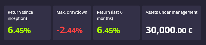 | کم خطر | +21.10 ٪ (قبل: +22.64 ٪) | 21.10 ٪ (16.90 ٪) | 222.01 یورو (194.34 یورو) | 94 ٪ (98 ٪) | 5.17 (4.39) | 292 (324) |