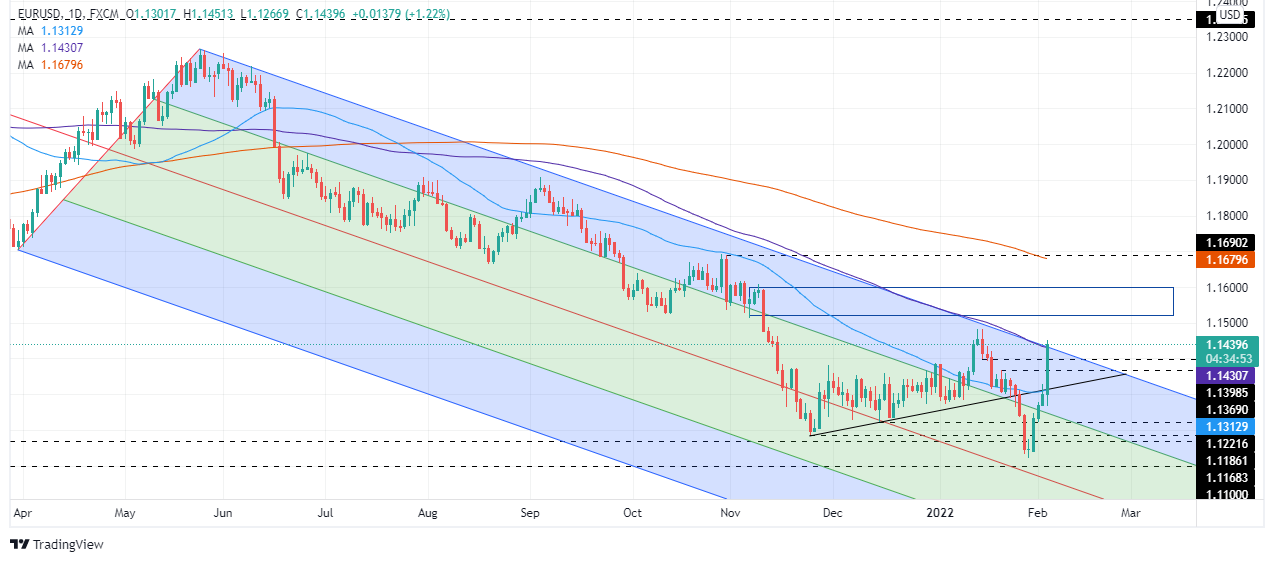 یورو/دلار آمریکا با حرکت 180 پیپ به بالای 1.1430 صعود کرد زیرا لاگارد بانک مرکزی اروپا در سال 2022 در حال پیاده روی بود.