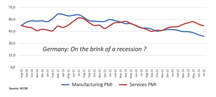 در تقویم داخلی، PMI تولید فلش در آلمان در ژوئیه به 38.8 رسید و در منطقه یورو به 42.7 رسید، در حالی که گیج خدمات به ترتیب در 52.0 و 51.1 قرار گرفت.