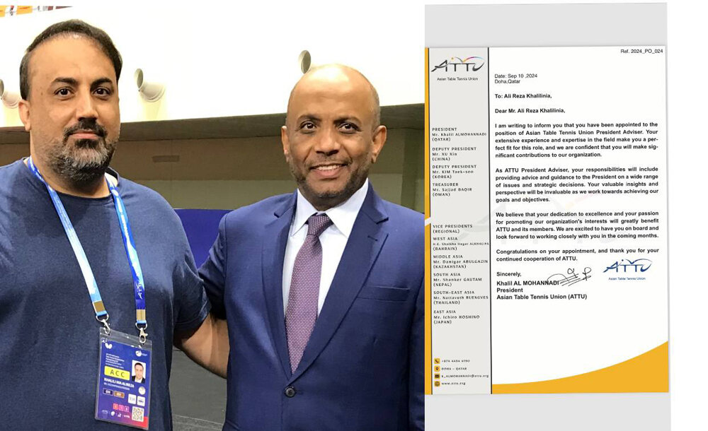 این نامه را به اطلاع شما می رسانم که به سمت مشاور رئیس اتحادیه تنیس روی میز آسیا منصوب می شوید.