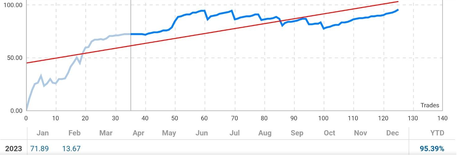با این حال، هنوز در ابتدا و تنها 2 ماه، اکانت زنده واقعی نشان می‌دهد که EA دقیقاً مانند آزمون پس‌زمینه عمل می‌کند… به سمتی می‌رود و در بازارهای جانبی چند درصد امتیاز کسب می‌کند، اما با شروع بازارها به ماه می‌رود. روند..