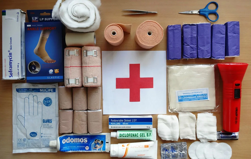 - کمکهای اولیه: شامل باند، گاز استریل، بتادین، چسب زخم، داروهای مسکن و داروهای شخصی مورد نیاز اعضای خانواده