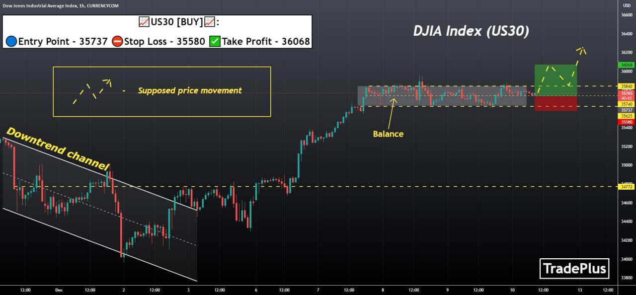 معامله خرید در نمودار نمایش داده می شود. البته این احتمال وجود دارد که قیمت ممکن است به مرز پایین تراز پایین بیاید 35625 دلار یا حتی آن را بشکنید و سپس دوباره برگردید. بنابراین، مانند همیشه، Stop Loss و سود جزئی را فراموش نکنید (و/یا حرکت به نقطه سربه سر).