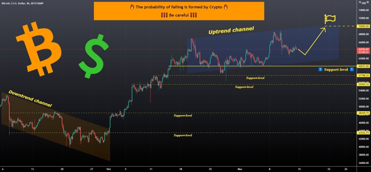 [ad_1] ➡️ بیت کوین در حال معامله است 64240 دلار. ارز دیجیتال باقی می ماند صعودی حالت. در حال حاضر، قیمت در داخل است کانال روند صعودی ، که در نیمه دوم اکتبر 2021 شروع به شکل گیری کرد. حمایت قوی در سطح 60072 دلار، در همان منطقه قیمت به عنوان خط پشتیبانی از کانال