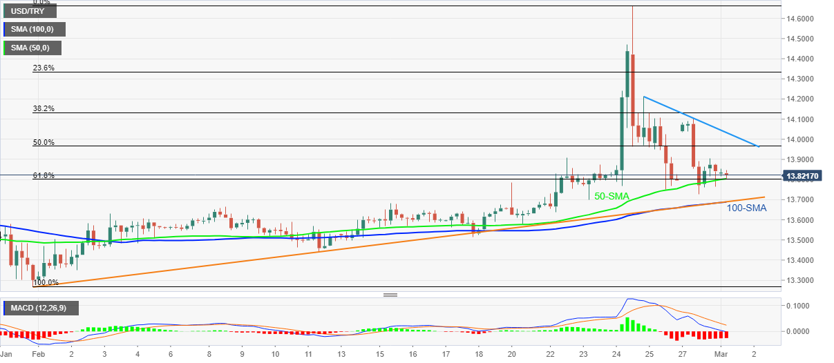 USD/TRY زیان های خفیف روزانه را در حدود 13.80 دلار چاپ می کند که 0.20٪ در روز کاهش یافته است، در حالی که به جلسه روز سه شنبه اروپا می رود.