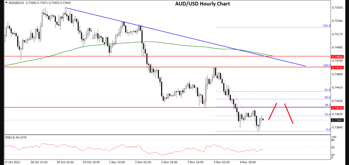· یک خط روند نزولی کلیدی با مقاومت نزدیک به 0.7470 در نمودار ساعتی AUD/USD شکل می گیرد.