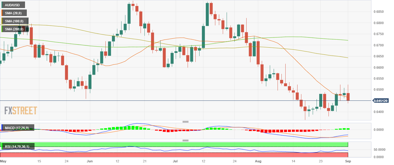 - AUD/USD retreated below the 20-day SMA towards 0.6450.