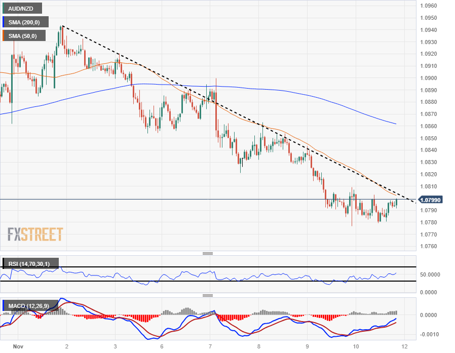 The AUD/NZD has managed to hold on for Friday, closing out the trading week close to flat on the last day after declining over 1.1% peak-to-trough from Monday’s peak near 1.0900.