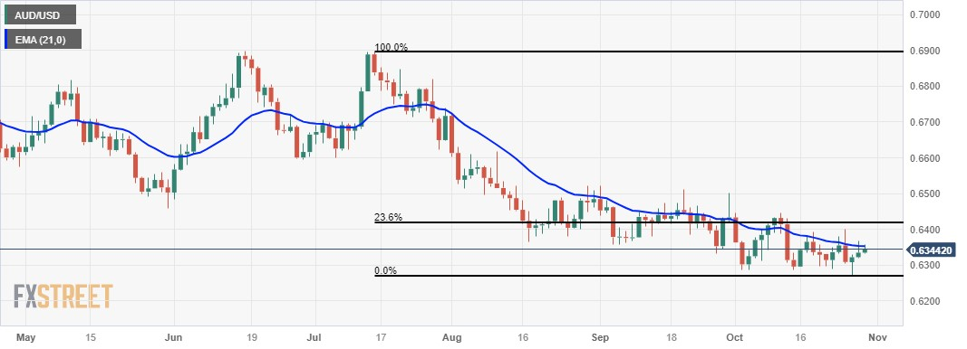 The Australian Dollar (AUD) extends gains for the third successive session, continuing the winning streak on Monday after rebounding from the yearly lows. The AUD/USD pair continues with the gains due to the weaker US Dollar (USD), which could be attributed to the economic data released from the United States (US) on Friday. Furthermore, the Reserve Bank of Australia (RBA) is expected to raise policy rates in the upcoming meeting on November 7.