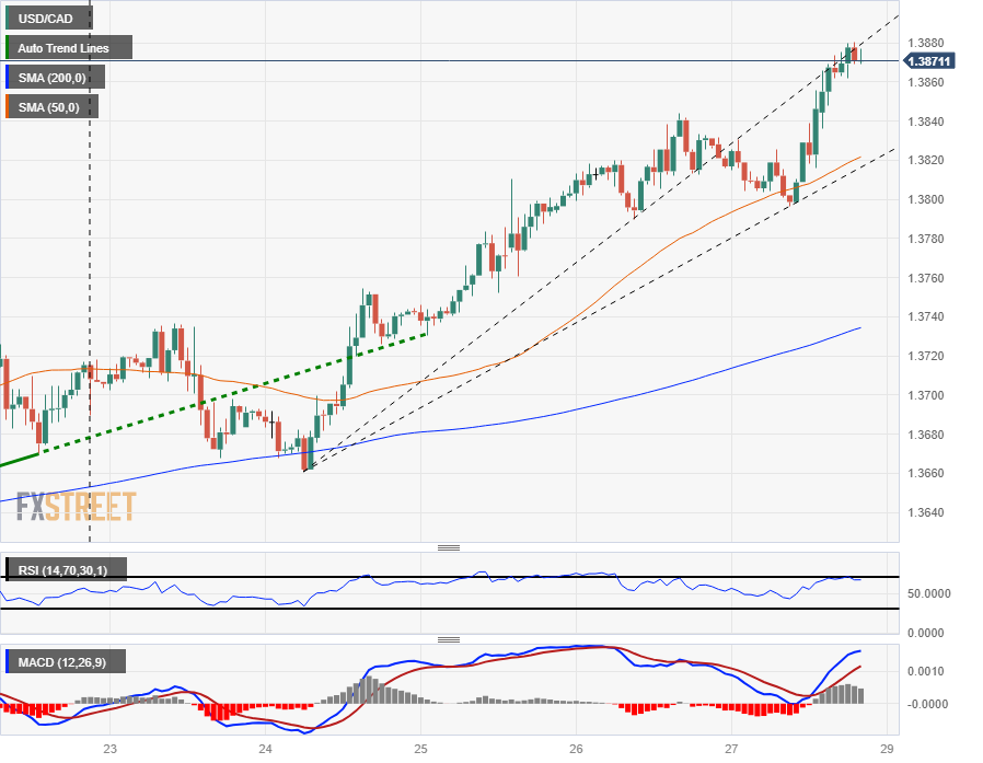The Canadian Dollar (CAD) is slumping into new lows for the year against the US Dollar (USD), sending the USD/CAD toward the 1.3900 handle on Friday. The pair is currently trading near 1.3870, and all it will take is one last push to reclaim the price level the pair hasn’t seen since October 2022.