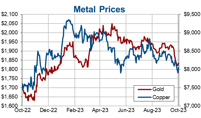 Gas bounced and is up 18% in the US compared to last Monday, while in Europe futures extended monthly gains to 20% and 18.6% for TTF and UK respectively. The latest spike came after Chevron Corp. was told by Israel to shut natural gas production at the Tamar platform following the attacks by Hamas on Israel over the weekend. European prices were further boosted by reports showing that the Baltic region was rocked by another major subsea gas pipeline incident. The Baltic connector subsea gas pipeline between Finland and Estonia was forced to halt operations after an unusual pressure drop. A leak could take several months to repair.