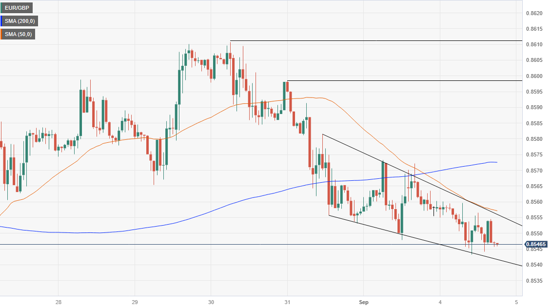 The Euro (EUR) loses ground against the Pound Sterling (GBP) amid a risk-on impulse, as well as expectations for interest rates staying unchanged by the European Central Bank (ECB). At the same time, the Bank of England (BoE) is seen by market analysts as the only one to raise rates by 25 bps in September. That, alongside technical resistance, dragged the EUR/GBP to a new seven-day low, as the pair trades at 0.8546 after hitting a high of 0.8559.