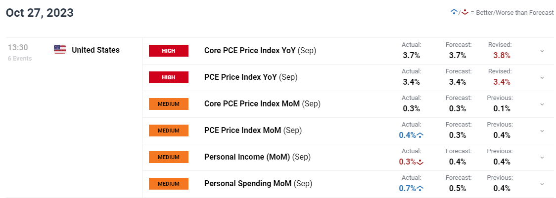 [ad_1] US Core PCE Key Points: MOST READ: Oil Price Forecast: WTI Rangebound as Demand Concerns Resurface. $80 a Barrel Incoming? Elevate your trading skills and gain a competitive edge. Get your hands on the US Dollar Q4 outlook today for exclusive insights into key market catalysts that should be on every trader’s radar. Recommended