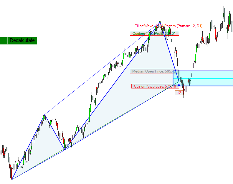 تشخیص الگوی امواج الیوت 1234 با استفاده از Robo Advisor ساخته شده در نمودار Optimum انجام شد.