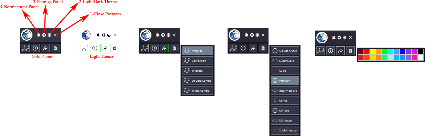 - Wave Level Button: This button allows users to select the level of wave pattern they want to highlight on the chart. The options available include primary, intermediate, and minor wave levels.