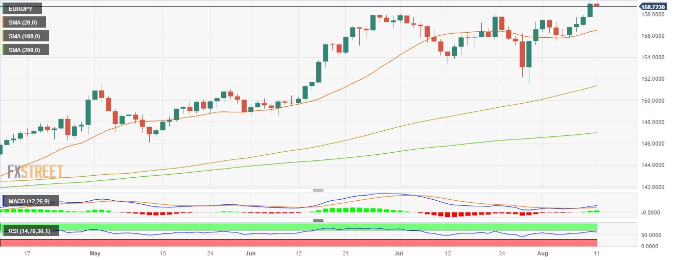 In Friday’s session, the EUR/JPY traded with losses, closed negative below the 159.00 area, and corrected after five consecutive days of gains. On the Euro’s side, France’s Consumer Price Index (CPI) figures slightly surprised to the upside but failed to significantly impact the pair, while no relevant reports featured on the Japanese economic calendar. All eyes are now on the Gross Domestic Product (GDP) for Q2, which will be released next week, for both the Eurozone and Japan region will help investors to place their bets on the European Central Bank (ECB) and Bank of Japan (BoJ) following decisions.