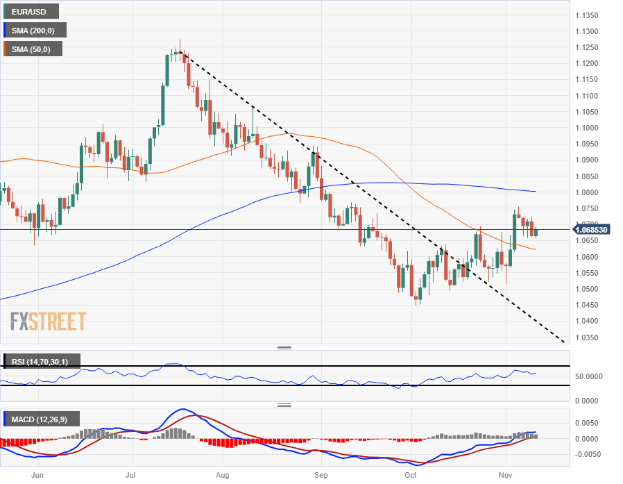 The EUR/USD is seeing a minor rebound on Friday as the US Dollar (USD) cools its heels following a week of steady gains that sent the Euro (EUR) down almost a full percent top-to-bottom from Monday’s peak of 1.0756.