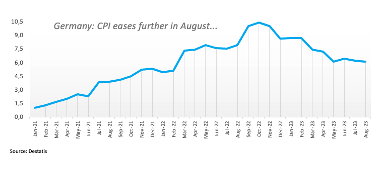 In the euro docket, final inflation figures in Germany saw the CPI rise at a monthly 0.3% in August and 6.1% over the last twelve months, unchanged from the preliminary estimates, while Industrial Production in France expanded by 0.8% MoM in July.