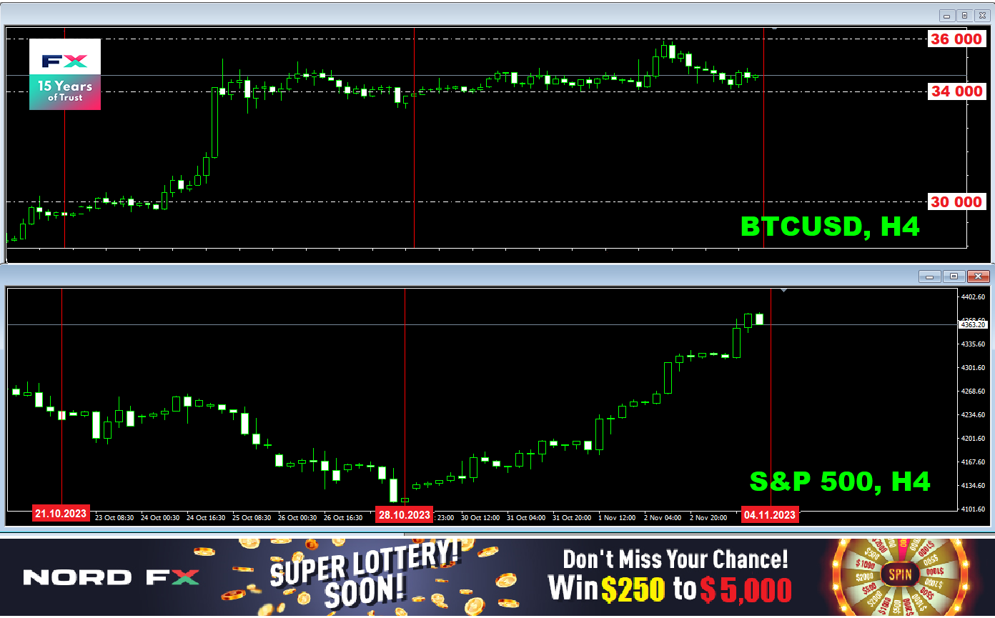 This year, starting at $27,000 on October 1, bitcoin tested the $35,000 level on October 24, showing an increase of approximately 30%. The final note of October placed the flagship cryptocurrency at $34,545. Several altcoins like Solana (SOL) and Chainlink (LINK) also demonstrated significant rallies. All these cryptocurrencies, paired with USD, are available for trading on the NordFX broker.