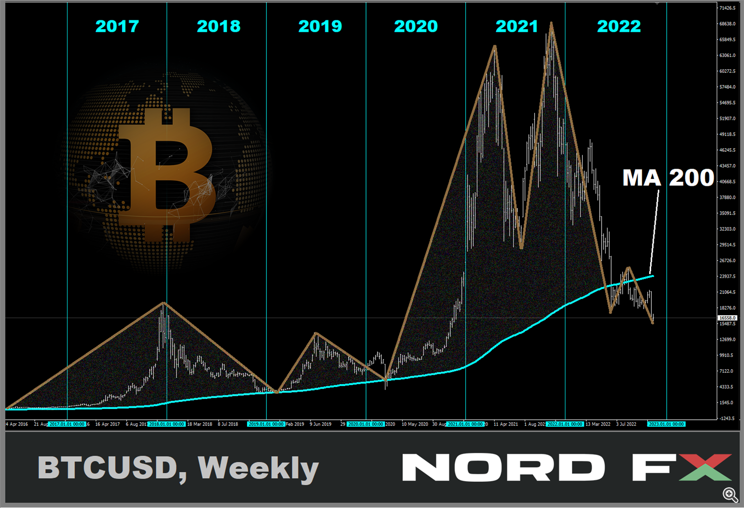 BTC/USD has already lost long-standing support in the form of the MA200 weekly moving average. However, experts from the analytical firm TradingShot conducted a fractal analysis, which did not rule out a powerful rally in the main cryptocurrency in 2023. In addition, its results suggest an increase in the bullish potential of the coin by 2024 and, possibly, its growth to $95,000.
