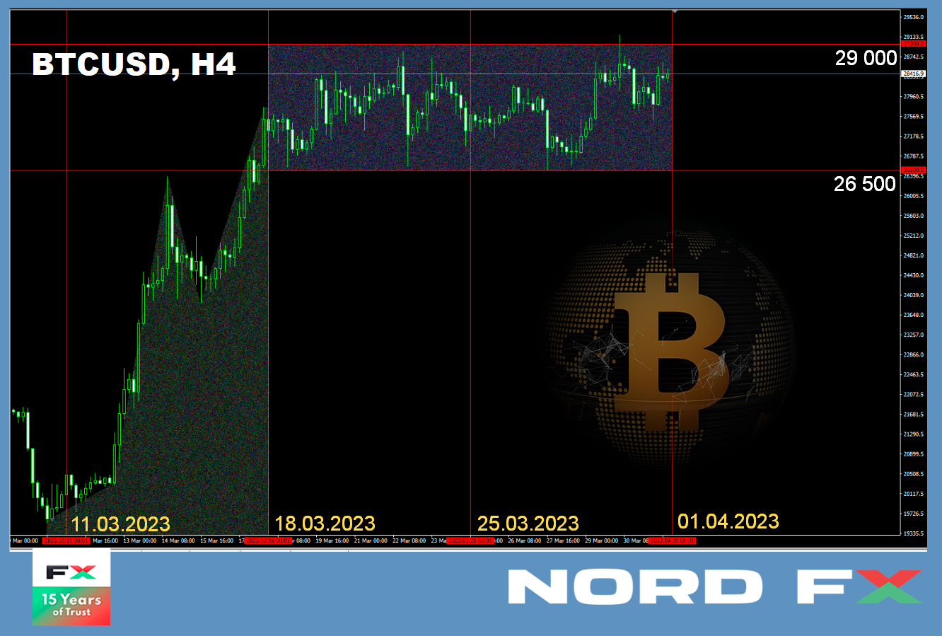● The crisis that crippled Silvergate, Silicon Valley Bank (SVB) and Signature and hit Credit Suisse has certainly helped the crypto market by reminding what decentralized finance was created for. However, investors’ fears about a new wave of the banking crisis in the US and Europe are gradually fading away, which is clearly seen on the BTC/USD chart. If during the March 10-17 rally, digital gold gained almost 45% in weight, it has been unsuccessfully trying to storm the important $29,000 resistance for the last two weeks. Bitcoin needs not only to rise, but to sustainably gain a foothold above this horizon. Then, according to a number of experts, starting from this, it will be able to reach the next goal of $35,000. In the meantime, BTC is supported by the $26,500 level.