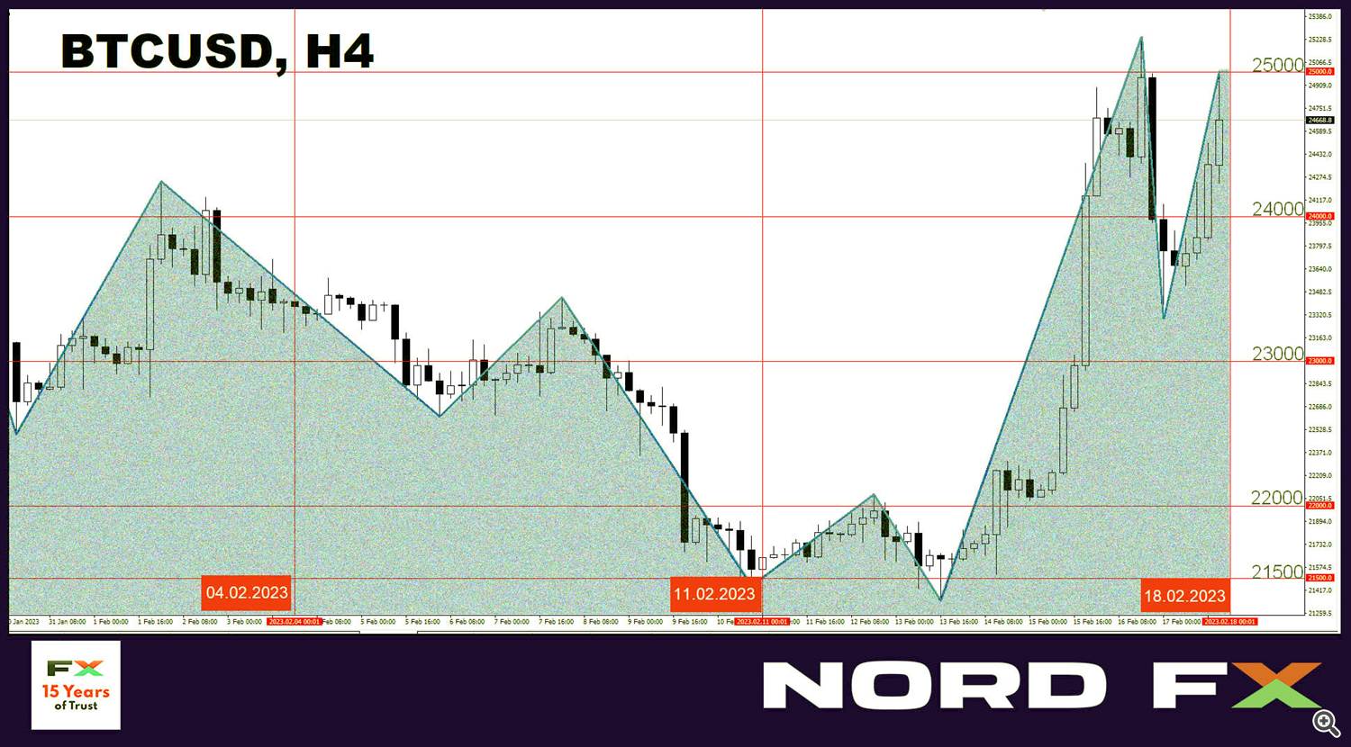 ● Surprisingly, against this frankly negative background, the price of bitcoin went up, reaching $25.241 on February 16. The last time BTC/USD climbed this high was in mid-August 2022. There have been several reasons for the current rally.