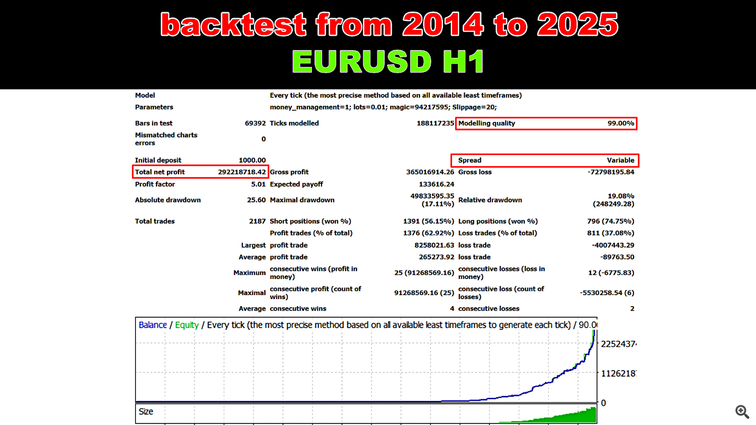 من بیش از سه سال در توسعه و بهبود این الگوریتم سرمایه گذاری کرده ام. با تشکر از پشتوانه گسترده در طی 10 سال گذشته ، ما تضمین می کنیم که کاهش پایین و نرخ پیروزی بالایی داشته باشیم و به شما امکان می دهیم با اطمینان تجارت موفق انجام دهید.